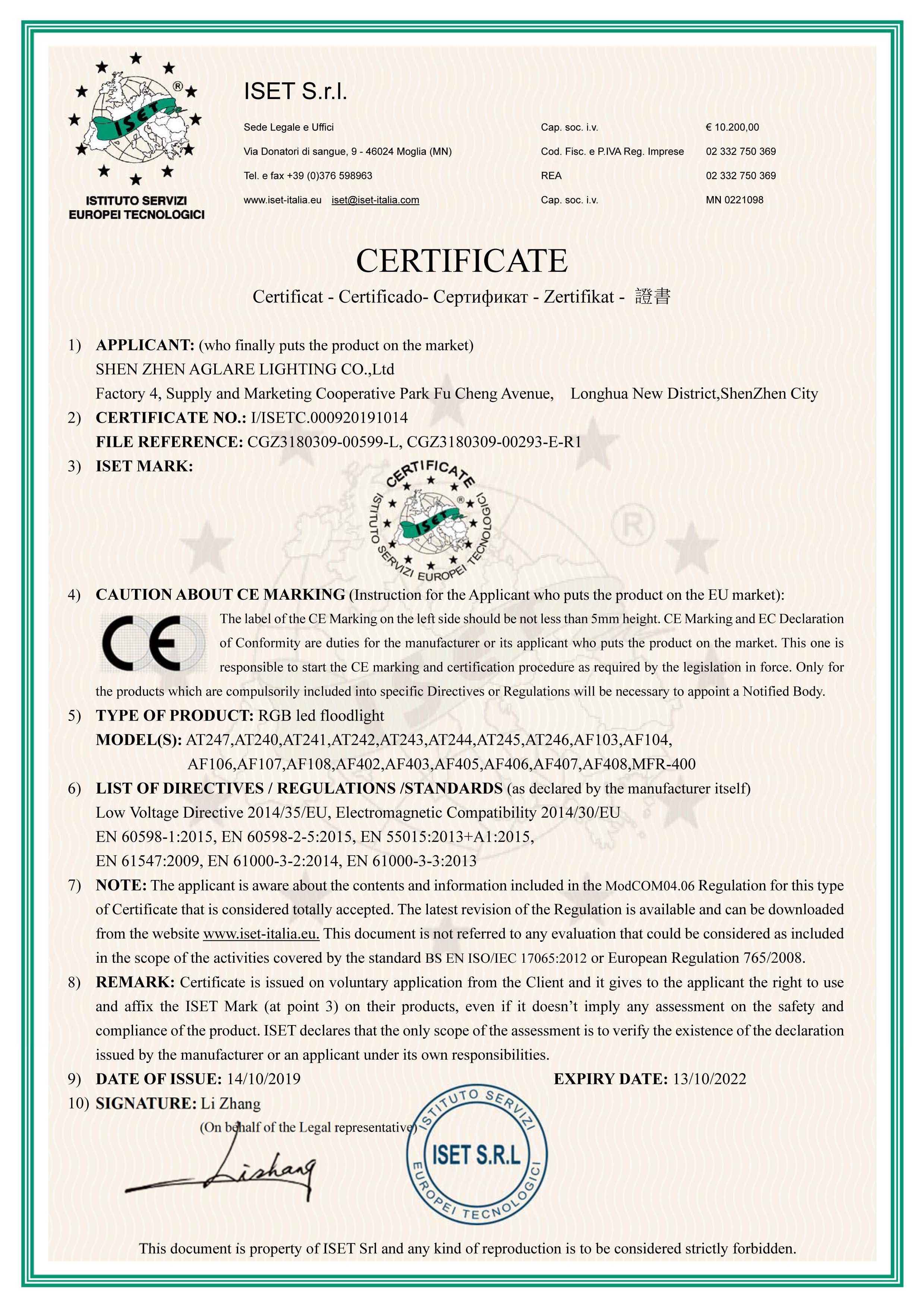 European certifications require that most of the products sold in the European Economic Area require the CE mark. This symbol indicates that the product manufacturer or service provider has ensured that the product complies with the appropriate European Union Directive and that the appropriate evaluation procedures have been completed. Relevant EU directives include instructions on toy safety and machine tools. There are currently about 25 orders requiring the product to be printed with the CE mark.